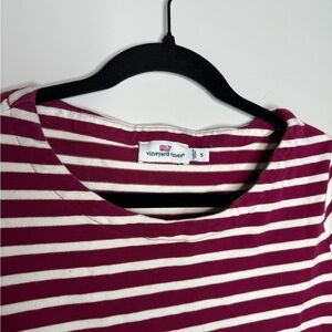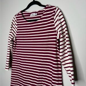 Chic burgundy and white striped top. Ideal for everyday wear. True to photos EUC