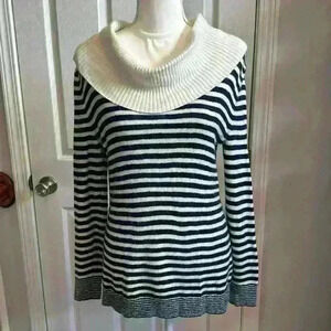 Vineyard Vines Sweater Long Sleeve Navy & Cream Striped Angora/Cashmere Women S