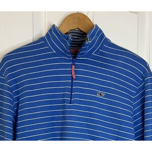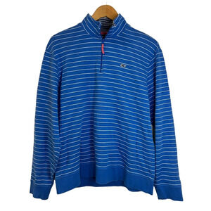 Vineyard Vines Sweater Men's M Blue Pin Stripe Quarter Zip Pullover Long Sleeve
