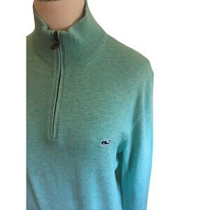 Vineyard Vines Sweater Women's Size XS Mint Green Cotton Mock Neck 1/4 Zip
