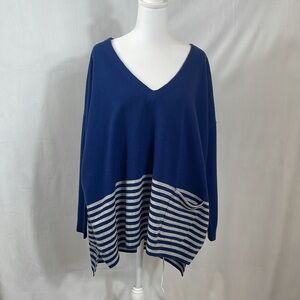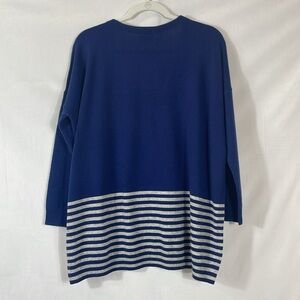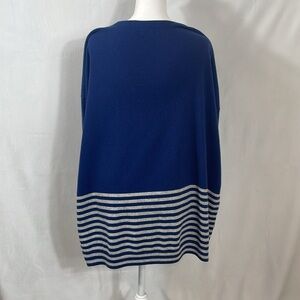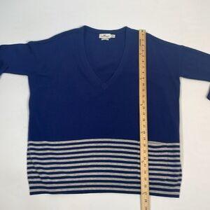 Vineyard Vines Oversized Sweater XS Wool Cashmere Blend Navy Gray Stripe. 90% Wool 10% Cashmere. V-neck Relaxed Fit. Excellent Preowned Condition