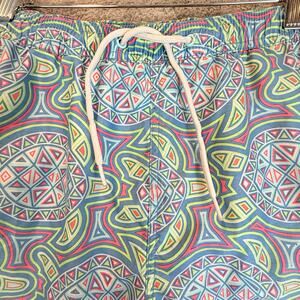 Vineyard Vines Swim Shorts Trunks Blue Pink Turtle Geometric Men's M Medium