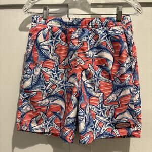 Vineyard Vines Swim Trunks Boys Large Blue Red Marlin Starfish Pattern Board Shorts