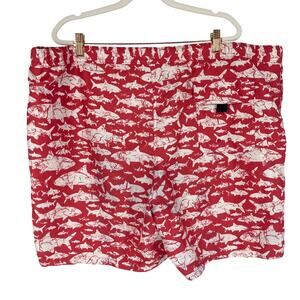 Vineyard Vines Swim Trunks Mens XL 46-48" Waist Red Shark Print Mesh Lined