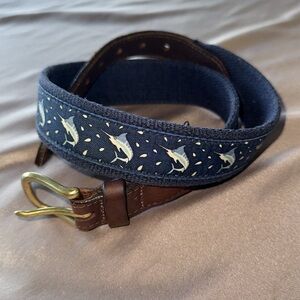 Vineyard Vines Swordfish Marlin Sailfish Fish Canvas and Leather and Silk Belt