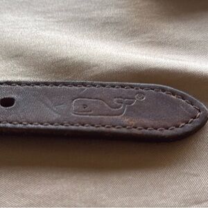 Vineyard Vines Swordfish Belt Brown Leather Blue Sailfish Silk Print Sz 26”
