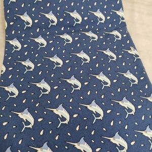 Vineyard Vines Swordfish Print Silk Tie USA Preppy Martha's Vineyard Blue White