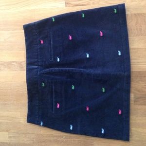 Excellent condition, hardly worn - navy corduroy skirt embroidered with pink/ green/ blue whales, size 4. Price firm.