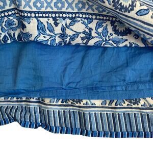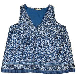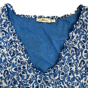Vineyard Vines Sz L Katama Tile Blue Scarf Pintuck Top Blouse Coastal Boho