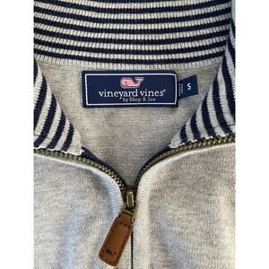 Vineyard Vines Sz S Gray 1/4 Zip Blue Striped Inside Collar Pullover Long Sleeve
