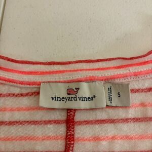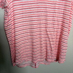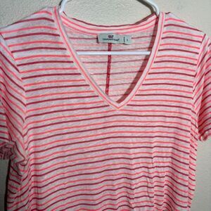Vineyard Vines T-Shirt Women's Small Pink Striped V-Neck Short Sleeve Linen Top