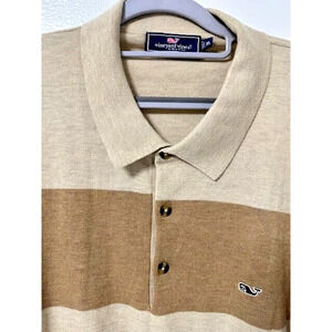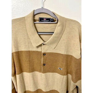 Vineyard Vines Tan Beige Striped Polo Sweater Long Sleeve Wool Blend Men’s XL