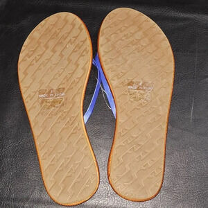 Chic Vineyard Vines sandals. Tan base with sleek blue straps. Ideal for everyday style.