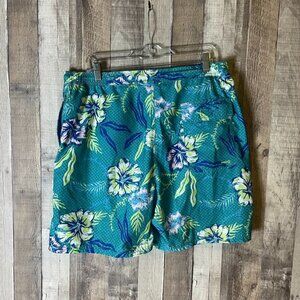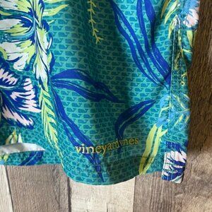 Vineyard Vines Teal Green Lined Hawaiian Print Swim Trunks