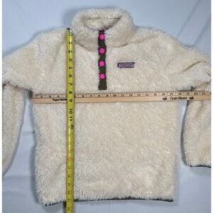 Vineyard Vines Teddy Fleece Snap Pullover Girls size L (14) Off White Pink Green