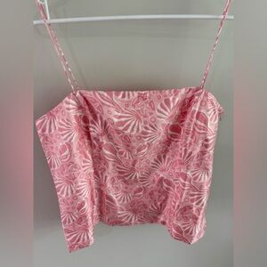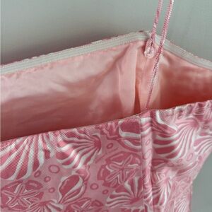 Sweet and whimsical shell printed “Tuckernuck” tank top by Vineyard Vines! Zipper along the side, boning along the sides, removable straps to wear strapless, and fully lined. Perfect summer vacation top!