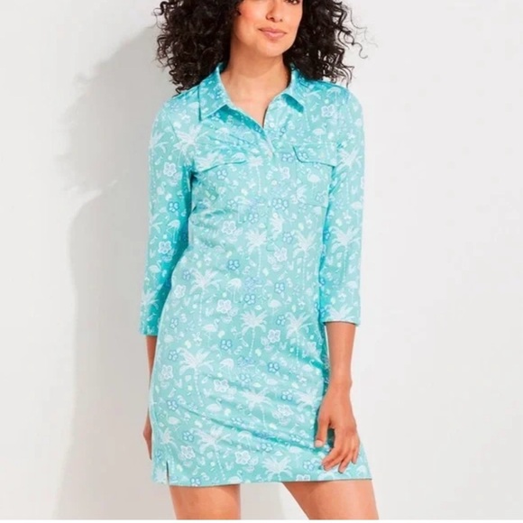 Vineyard Vines • Tropical Flamingo Floral 3/4 Sleeve Preppy Shirt Dress • Size S