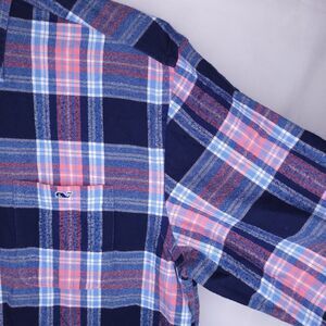 Vineyard Vines Tucker Shirt Mens Large Plaid Navy, Pink Flannel