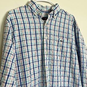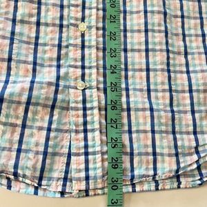 Vineyard Vines Tucker Button Up Shirt Mens Med Blue Pink Windowpane Plaid Whale.
