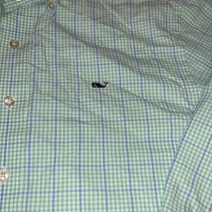 Vineyard Vines Whale Shirt Button Down Preppy Green Gingham with Blue Size Med