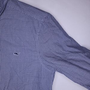 Vineyard Vines Whale Shirt Mens Medium Gingham Blue, White Cotton