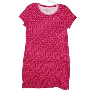 Vineyard Vines Whale Tail Print Tee Dress Rhododendron Pink Side Hem Slits New With Tag, round neck, lightweight jersey knit, 95 cotton, spandex, breathable, nautical, beach, casual, vacation, preppy,