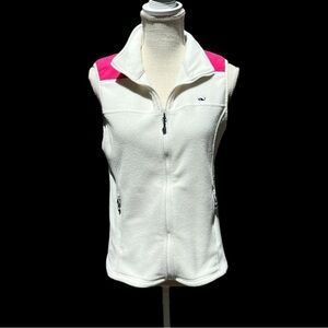 🌻Vineyard Vines White w Pink Accent Full-Zip Sweater Fleece Vest Size XS