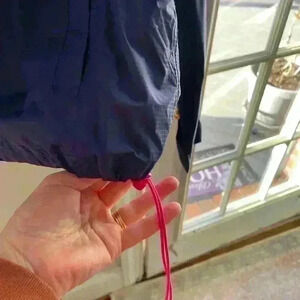 Great condition, cinch waist and hood, removable hood with zipper, Velcro at sleeves/wrists, smoke free home, quarter zip, wind, rain