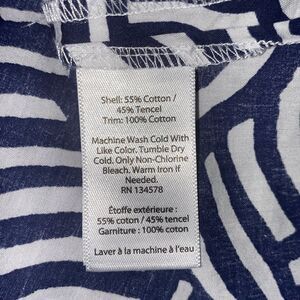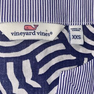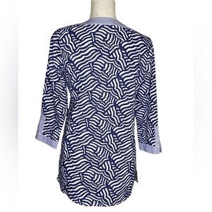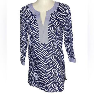 Vineyard Vines Wm’s Sz XXS Blue White Whale Tail Wave Print Y Neck Tunic Top