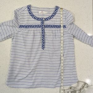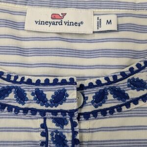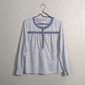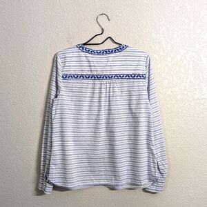 Vineyard Vines Woman Blue White Striped Long Sleeve Top Blouse Embroidery M