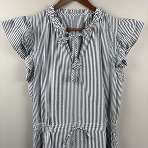 Vineyard Vines Women L Harbor Flutter Seersucker Tunic Dress Gray Striped Cinch