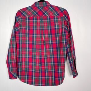 Vineyard Vines Womens 0 Red Green Merry Plaid Chilmark Relaxed Button Down Shirt