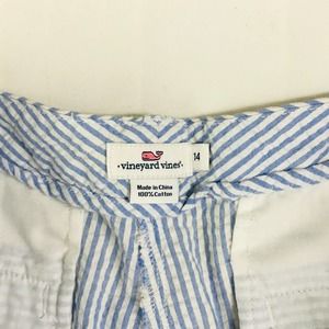 Vineyard Vines Women's 14 Pants Blue White Straight Crop Striped Seersucker DE16