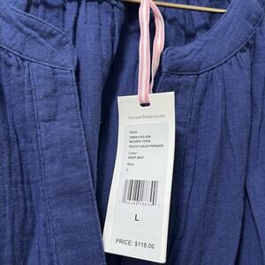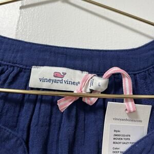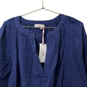 Vineyard Vines Womens Beachy Gauzy Popover 3/4 Sleeve Top Size L Navy Coastal