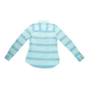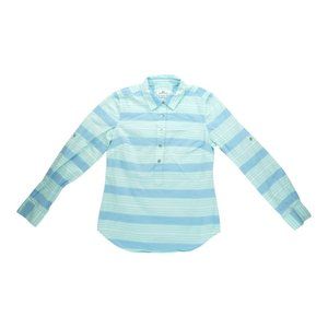 Vineyard Vines Womens Blouse Aquamarine Cove Stripe Poplin Popover Top Sz 2