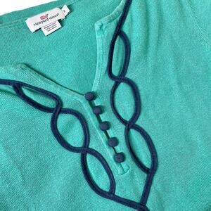 Vineyard Vines Womens Embellished Notch Neck Wool Blend Sweater Size S Teal