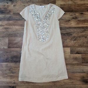 Vineyard Vines Women's Linen Cotten Blend Shell Beaded Cream Tunic Dress Size 2. Great condition