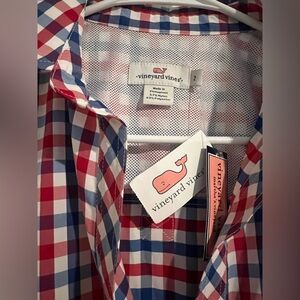 Vineyard Vines Women’s Long Sleeve Gingham Tunic Shirt Red White Blue Plaid