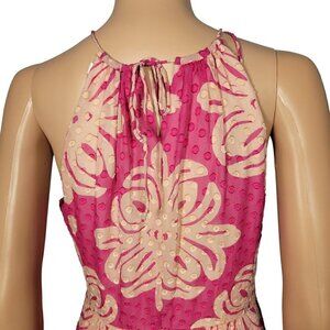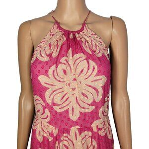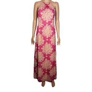 Vineyard Vines Women's Medallion Silk Blend Pink Halter Maxi Dress Size 6