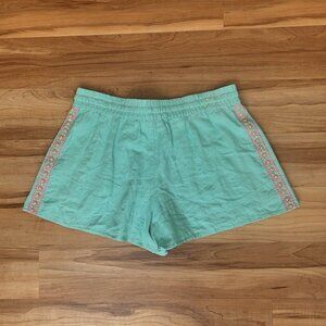 Vineyard Vines Women's Medium Linen Embroidered Shorts Teal Beads Sequins