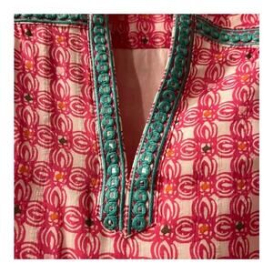 Preowned Vineyard Vines Cowrie Shell Silk Tunic Dress Sz 8 Lined Pink Embellished Resort