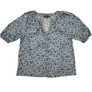 Vineyard Vines Women’s Puff Sleeve Button Front Blue Floral Blouse Size Medium