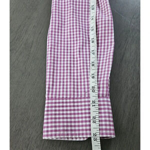 Elevate your wardrobe with this charming Vineyard Vines button-up shirt! Featuring a playful purple gingham pattern, collared neckline, and roll tab sleeves, this top is perfect for any occasion. Made with 100% cotton material and machine washable, care is a breeze. This women's size 2 shirt has a regular fit and is ideal for a basic, yet stylish addition to your collection. From the office to a night out, this shirt is versatile and fashionable.