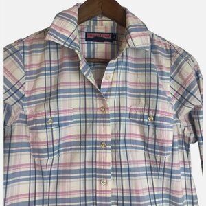 Vineyard Vines Women’s Shirt Size 6 Pastel Plaid Cotton Whale Logo Preppy HTF