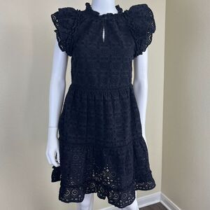 Vineyard Vines Women's Size XS Black Eyelet Tiered Ruffle Mini NEW Dress Cottage