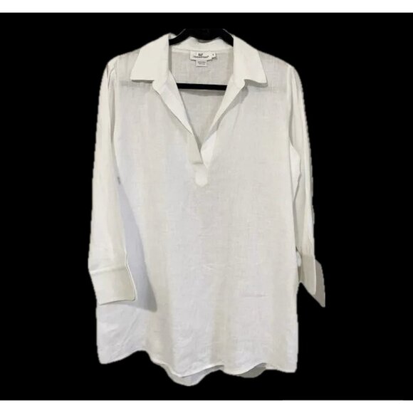 Vineyard Vines Women’s Small Linen Tunic Top White 3/4 Sleeves Popover Coastal