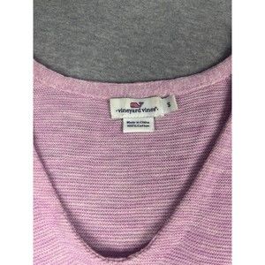 Vineyard Vines Womens Sweater Size Small ~ Pink V Neck Cotton Tight Knit. Staining around the collar, and the brand tag. Some discoloration around the sleeves.