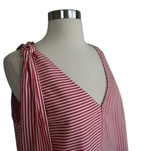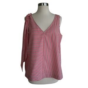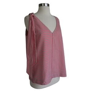 Vineyard Vines Womens Taffy Stripe Bow Top Size Medium Red White V Neck Nautical