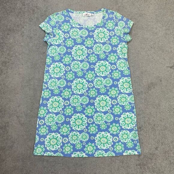 Vineyard Vines Womens Mandala Floral Short Sleeve Shift Dress Blue Green Small