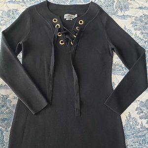 Vineyard Vines Wool Lace Up Long Sleeve Mini Black Sweater Dress Size S.